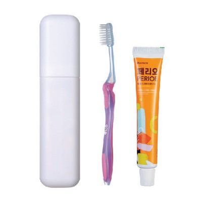 | 기타사항 | (종이케이스별도 100원) •구성 : 케이스(고정형)+칫솔1개 +페리오치약50g •Size : 47 x 30 x 200mm •재질 : 케이스-HDPE / 칫솔-PP ※칼라인쇄시 100원 추가 |