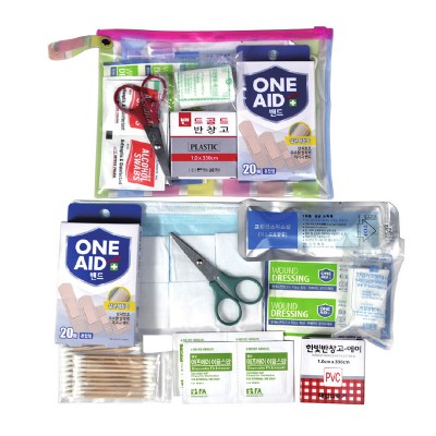 | 기타사항 | 가위/20p면봉/6p절솜/반창고/혼합밴드/1회용마스크/ 알콜솜 4p/알콜스틱/트레싱밴드 |