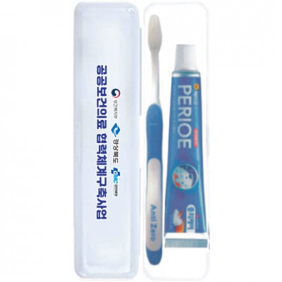 | 기타사항 | (종이케이스별도 100원) •Size : 200x45x30㎜ •페리오치약50g,신형안티제로칫솔 ※구성품 교체 가능 / 칼라인쇄시 100원추가 |